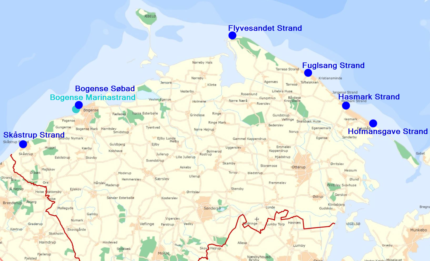 De syv nordfynske badestrande