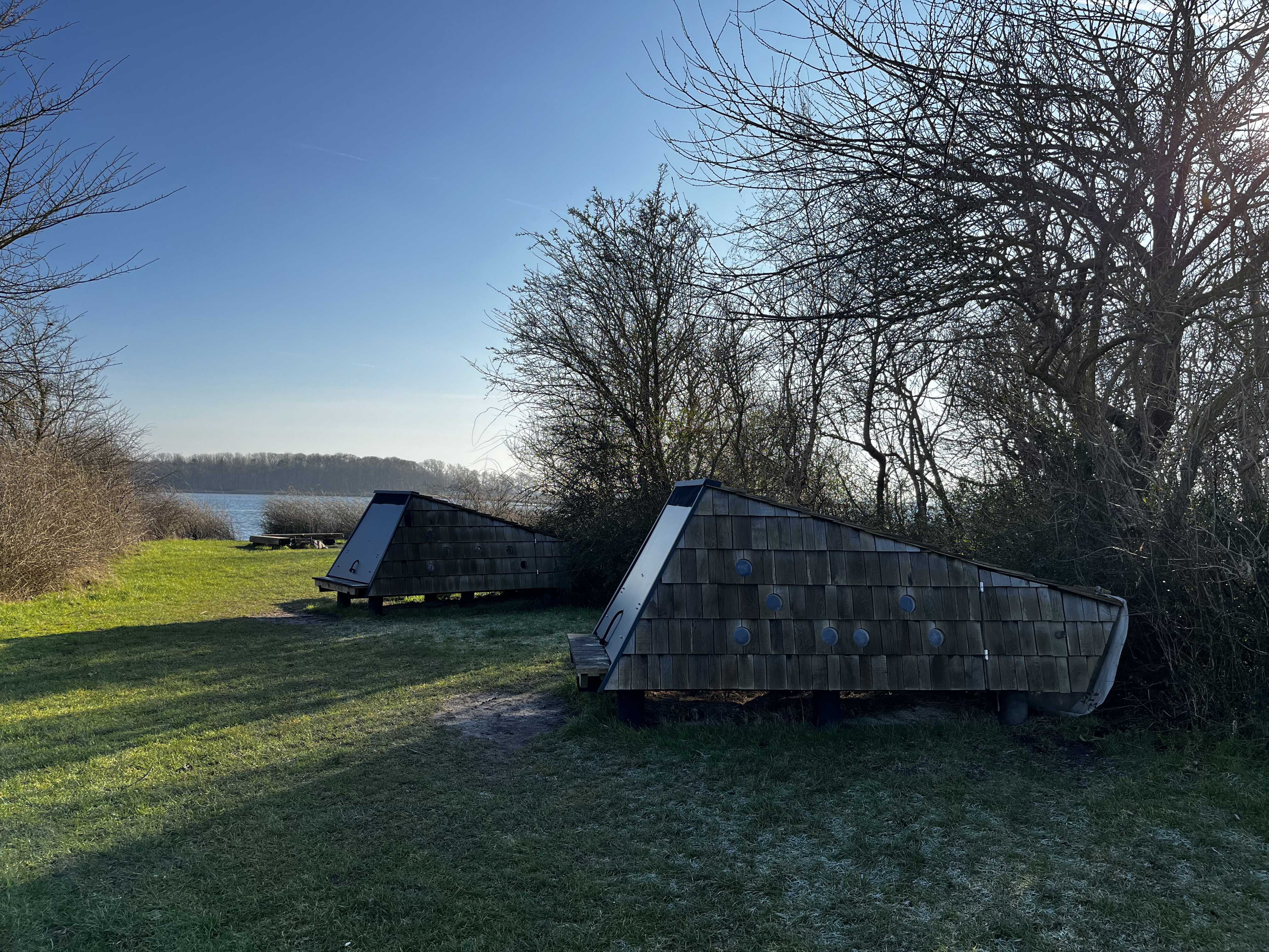 Med udsigt til Odense Fjord kan du overnatte i vores to sheltere ved Klintebjerg Havn.
